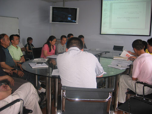 2008年7月15日由質管部主持召開了 “水表新國家標準和水表檢定規(guī)程”宣貫會議,參加學習的有公司總經理鄭孚、質量主管副總王文革、研發(fā)主管副總周家檳,技術總監(jiān)史建君,生產主管副總許維克,生產部、質量部負責人、技術人員以及各相關計量測試檢定人員等共20多人。