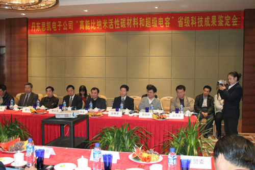遼寧省科技廳于2008 年 10月30 日在丹東市組織專家對丹東思凱電子發(fā)展有限責任公司研發(fā)的“高能比納米活性碳材料和超級電容”項目進行科技成果鑒定,專家聽取了項目報告,審查了有關資料,進行了現(xiàn)場查驗和測試,經(jīng)認真討論,形成鑒定意見如下: