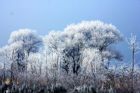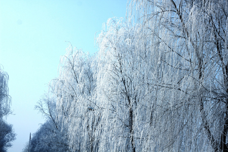 2012年2月4日由于天氣變化,丹東出現(xiàn)了霧凇冰雪美景。公司內(nèi)外的樹木遠(yuǎn)望去,樹冠似煙似霧,與天上的藍(lán)天白云相接,渾然 一體,令人陶醉,近看來,樹木枝丫間美麗皎白、晶瑩閃爍,似童話世界。此難得景象,引來公司員工紛紛至企業(yè)庭院賞景拍照。